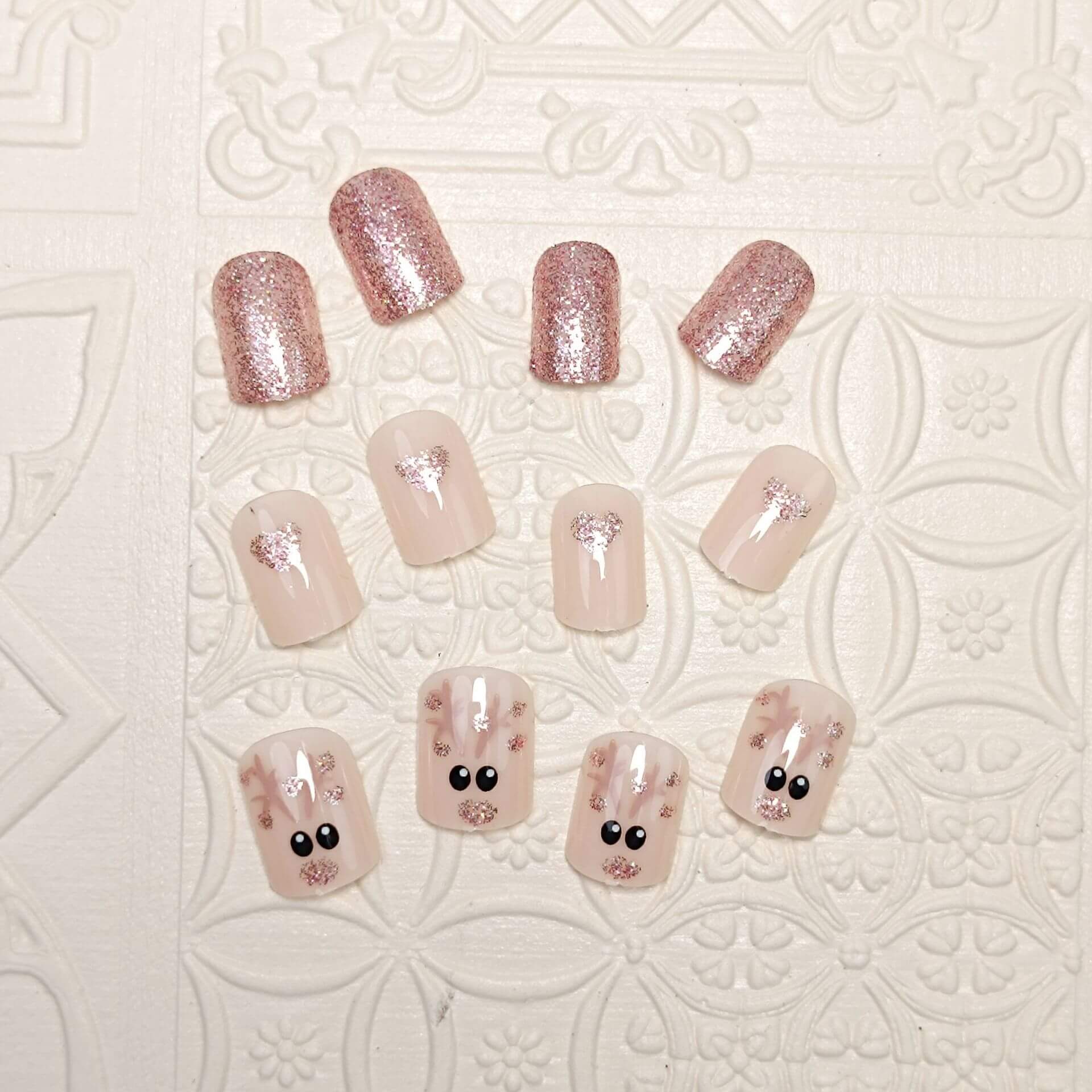 Christmas Deer Glitter Press On Nails