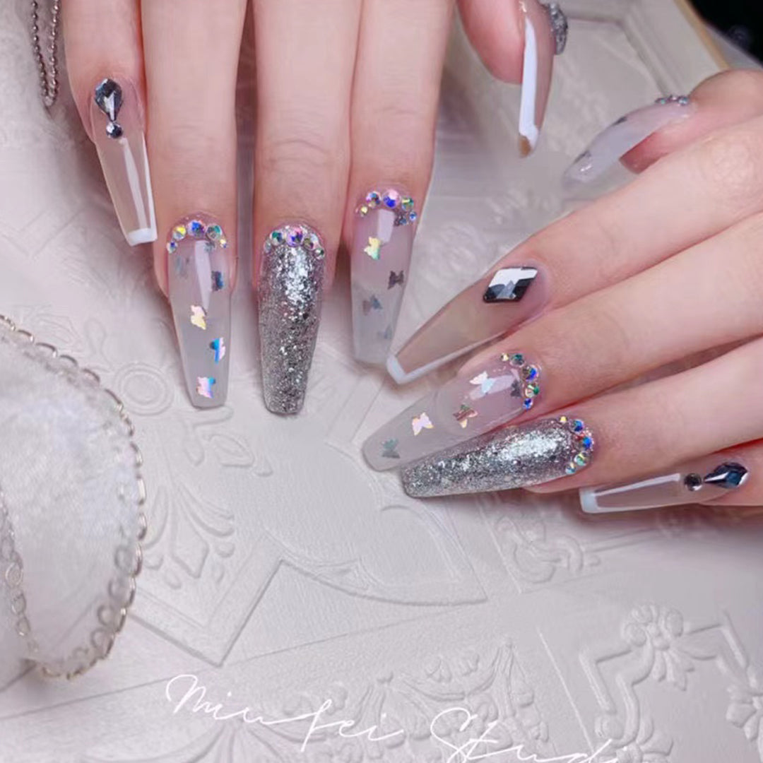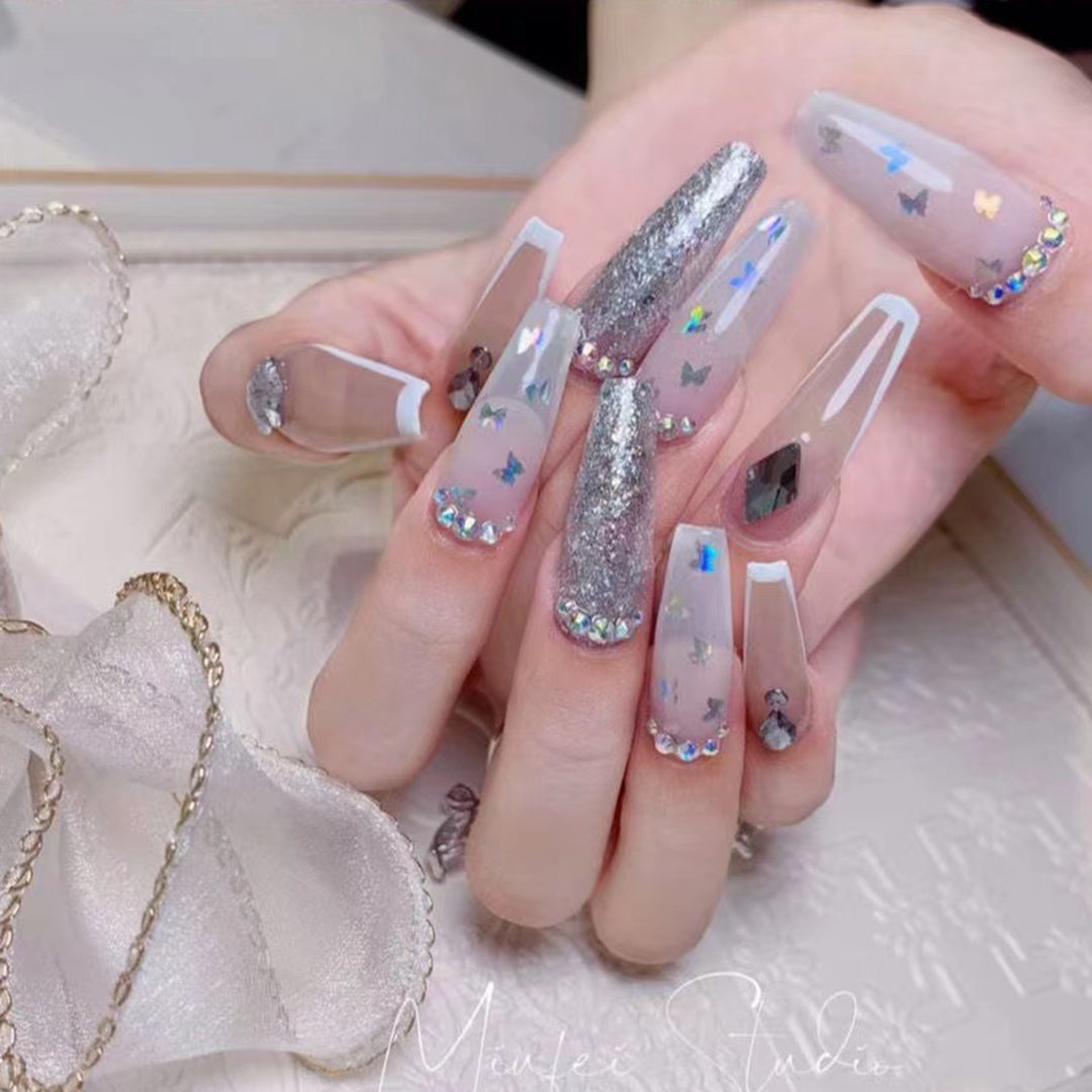 #BL97 Handmade Press On Nails Medium Nails Shinny Butterfly