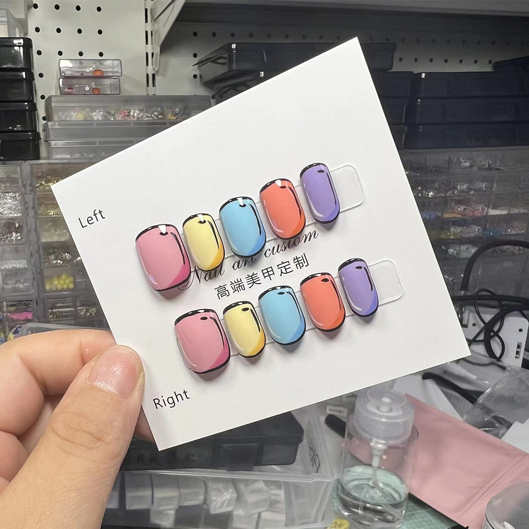 All nail orders come with 10 pcs of handmade press ons, 24pcs of sticker pads, 1 nail glue,  1 wood stick, 1 nail file, 1 alcohol prep pad.