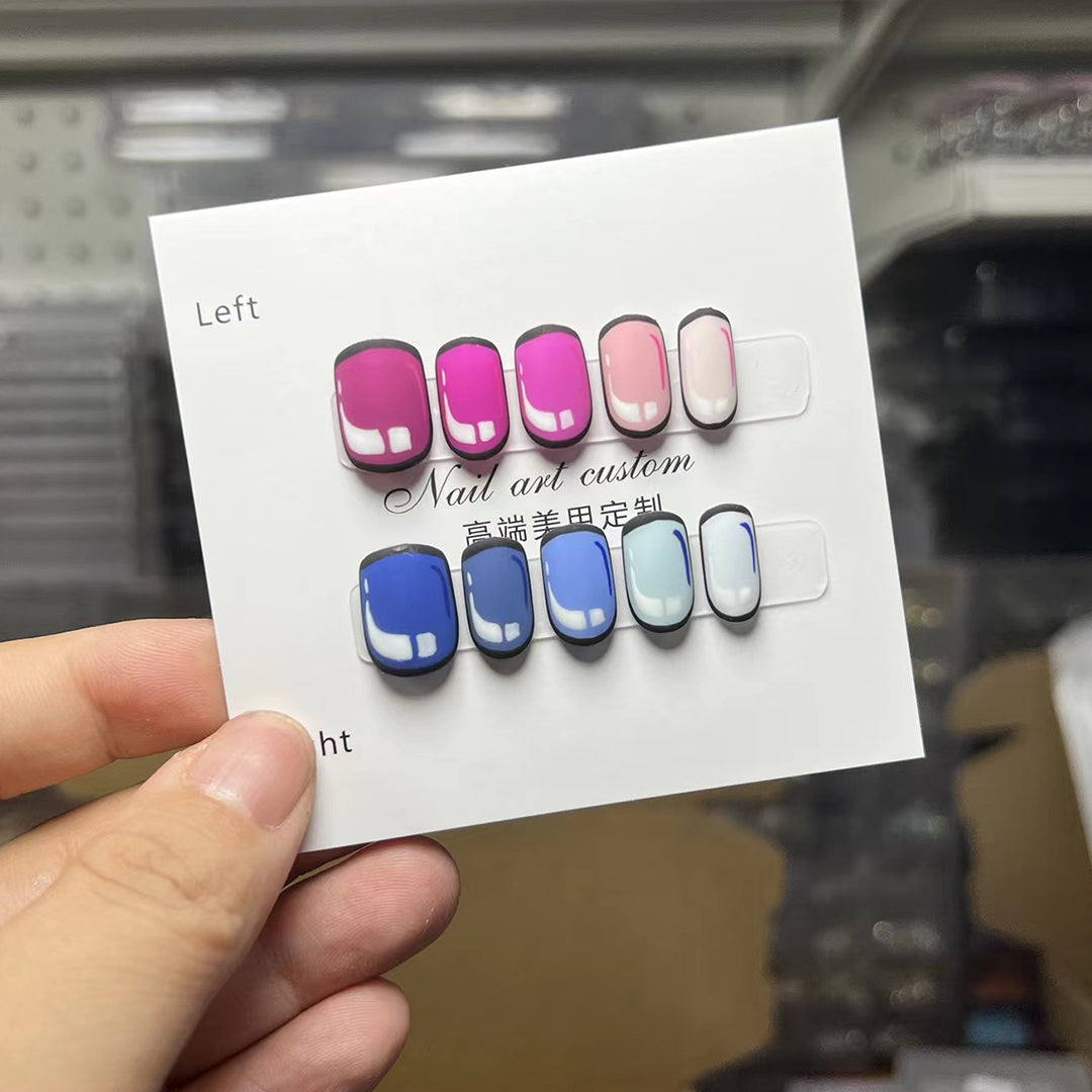 All nail orders come with 10 pcs of handmade press ons, 24pcs of sticker pads, 1 nail glue, 1 wood stick, 1 nail file, 1 alcohol prep pad.