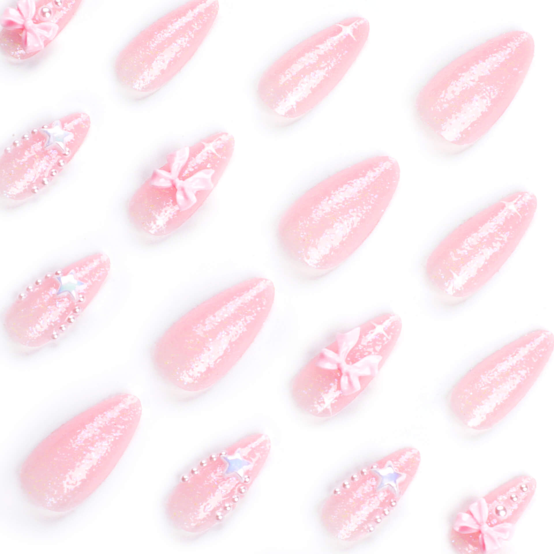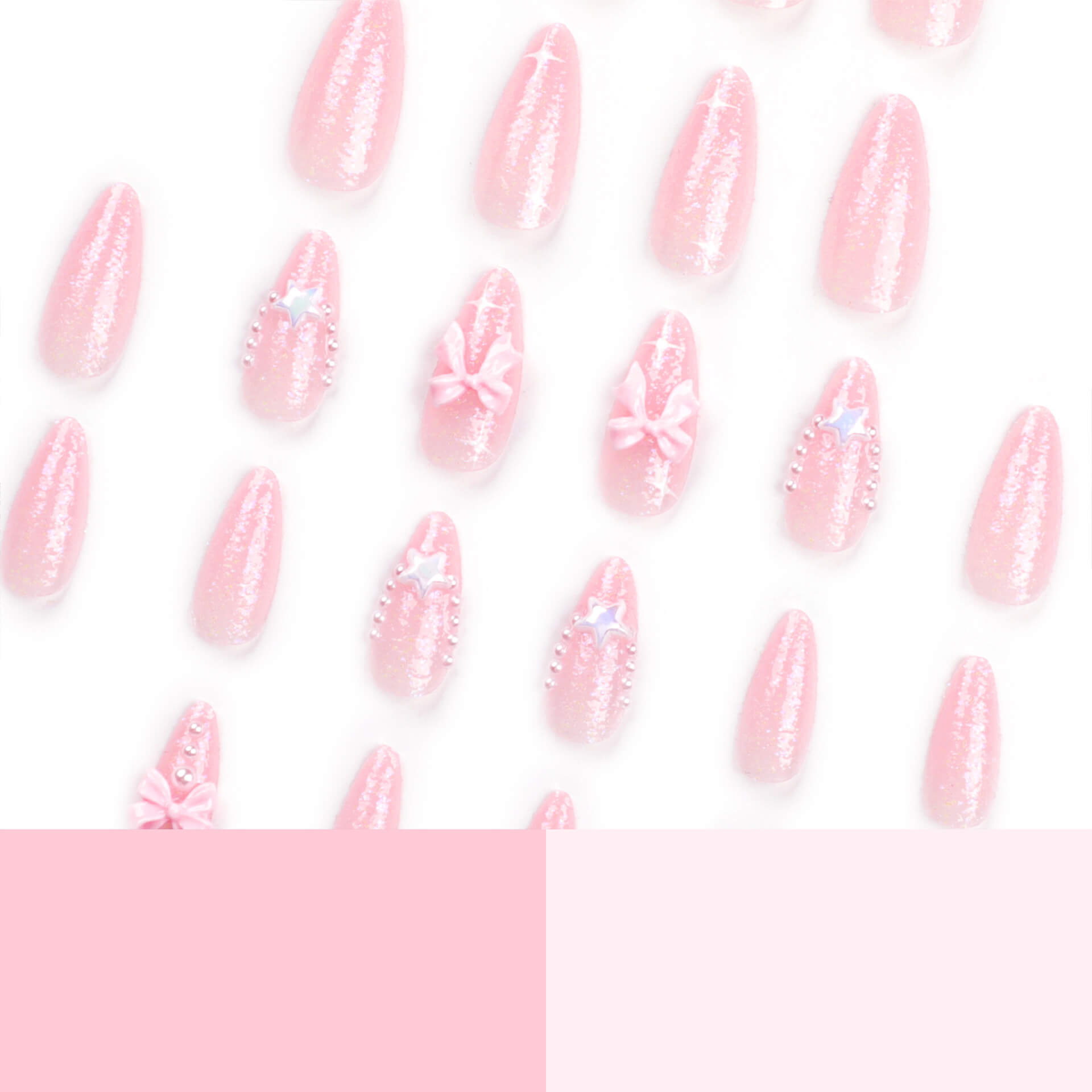 Pink Glitter 3D Bow Star Pearl Press On Nails